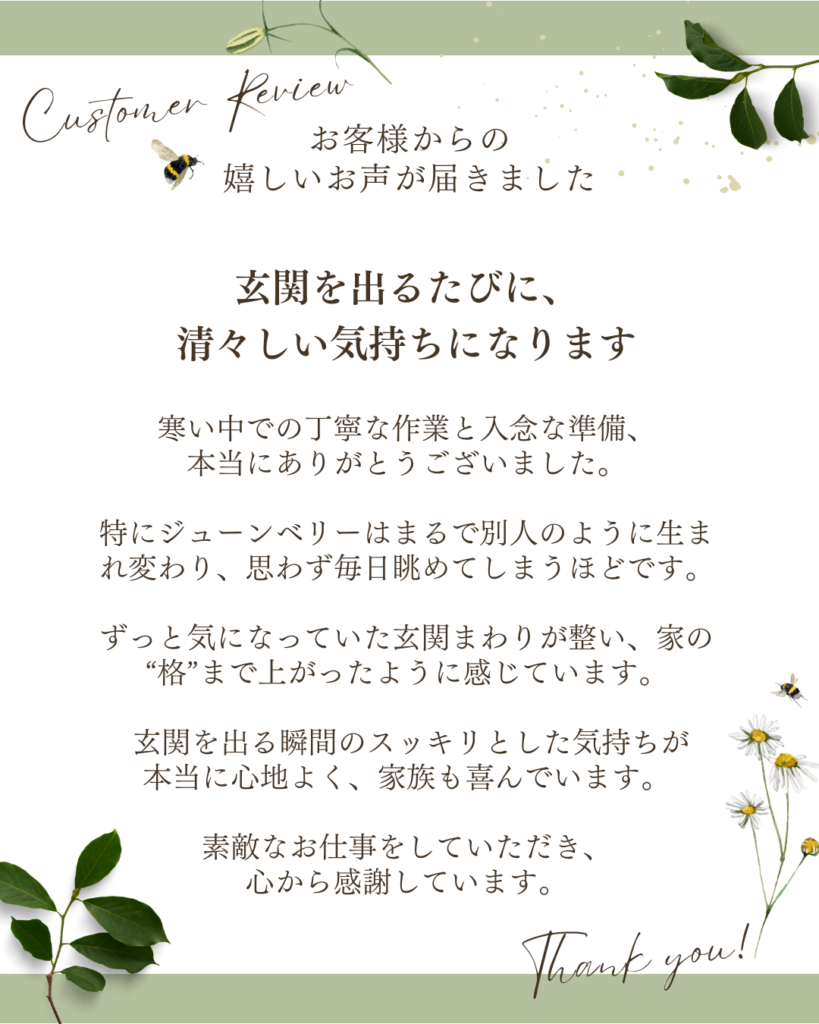 ◆完成後、お客様から嬉しいお声をいただくことができ、この仕事をしていて本当に良かったと思える一日になりました。